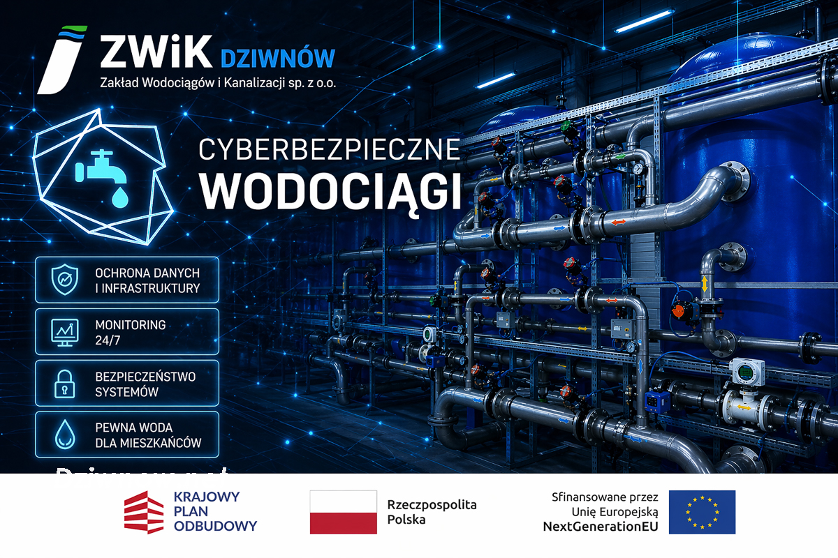 Zakład Wodociągów i Kanalizacji Sp. z o.o. z siedzibą w Dziwnowie uzyskał dofinansowanie w ramach konkursu grantowego „Cyberbezpieczne Wodociągi”.